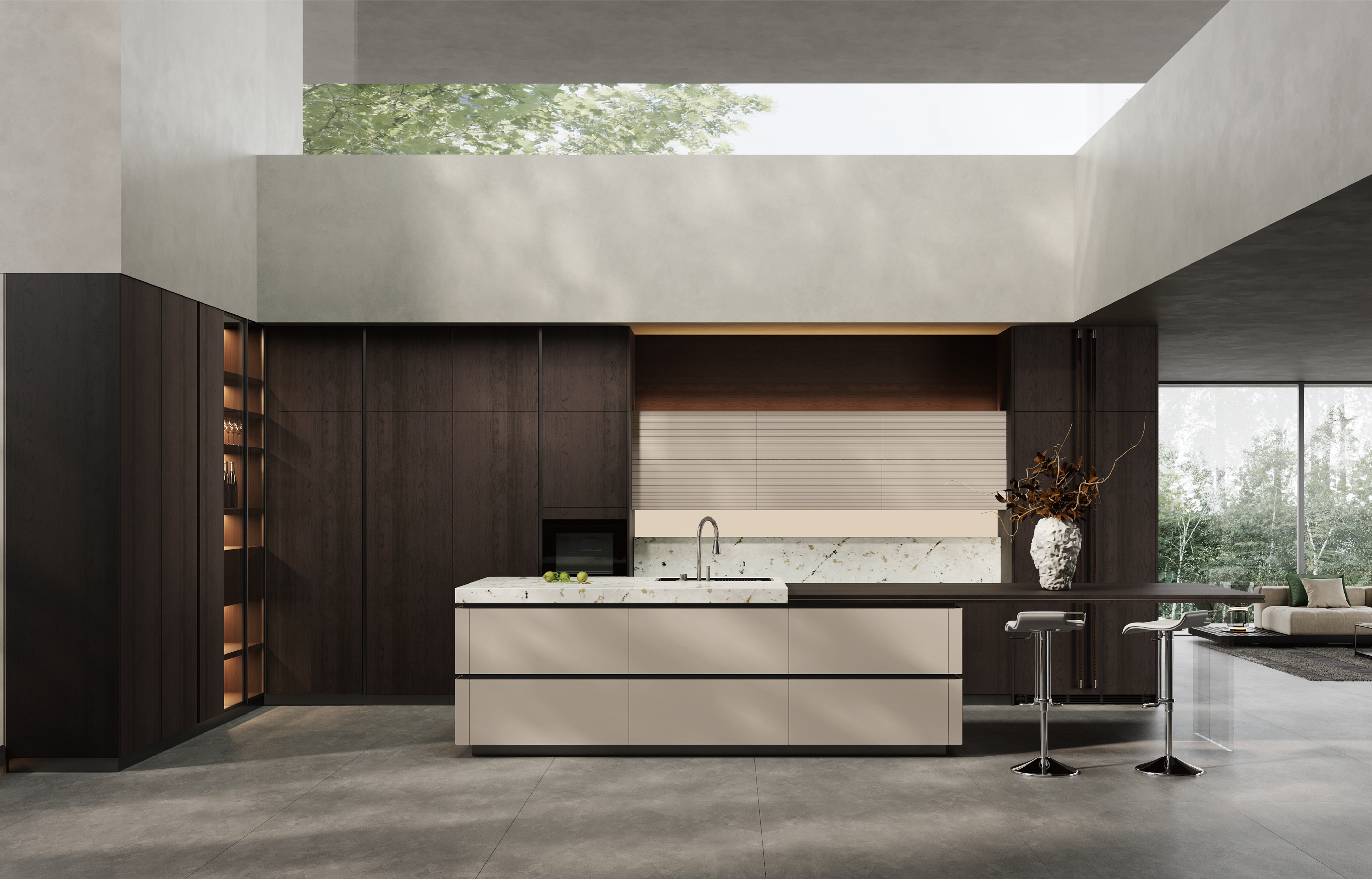 通过利来国际厨柜量体裁柜,定制出适合主厨下厨的烹饪区和洗涤区的舒适高度。